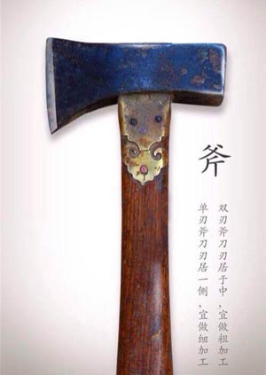 斧子:主要用于砍削木材。斧子有單刃斧和雙刃斧。單刃斧的刀刃居一側(cè),適合做細(xì)加工,雙刃斧的刀刃居于中,適合做粗加工。