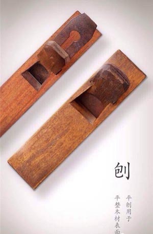 刨子:是傳統(tǒng)古典家具制作的一種常用工具,由刨刃和刨床兩部分構(gòu)成。刨刃是金屬鍛制而成的,刨床是木制的,即將一段鋼質(zhì)刀刃斜向插入一只帶方形孔的臺(tái)座之中,上用壓鐵壓緊,臺(tái)座長(zhǎng)條形,左右有手柄,便于手持。手工刨刨削的過程,就是刨刃在刨床的向前運(yùn)動(dòng)中不斷地切削木材的過程。把木材表面刨光或加工方正叫刨料。木料畫線、鑿榫、鋸榫后再進(jìn)行刨削叫凈料。家具結(jié)構(gòu)組合后,全面刨削平整叫凈光。臺(tái)刨歷史最少可上溯到明代。