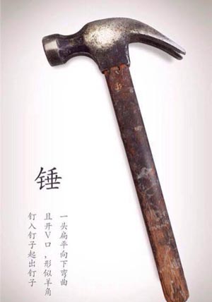 錘子:最常用矯正或是將物件敲開的木工工具。錘子有多種形式,常見的形式是一柄把手以及頂部,頂部的一面是平坦的以便敲擊,另一面錘頭的形狀像羊角,其功能為拉出釘子。另外也有著圓頭形的錘頭。