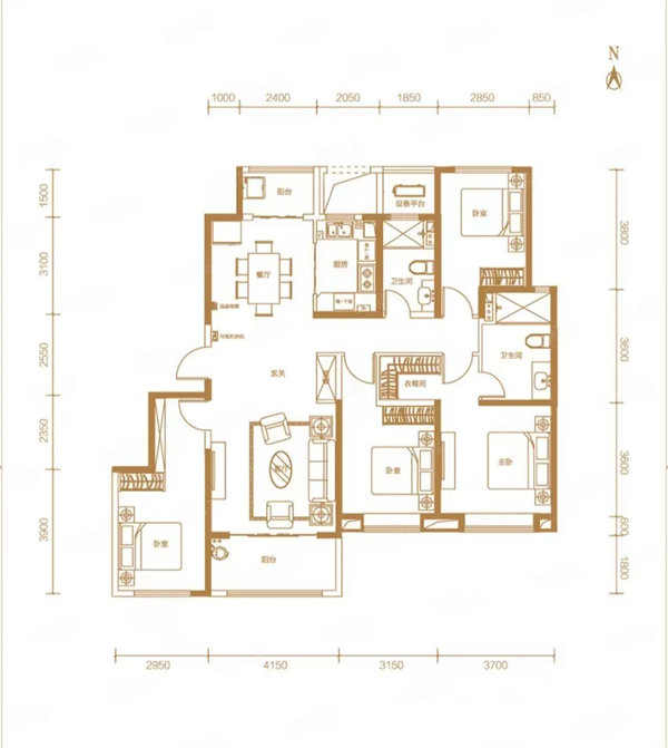 戶型及面積:四室兩廳,178㎡