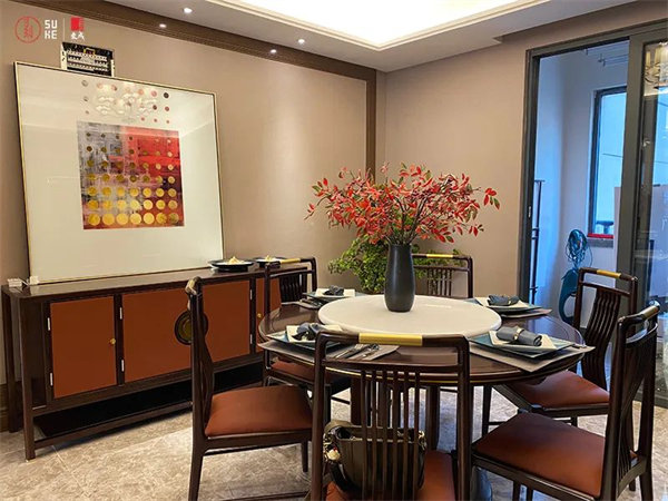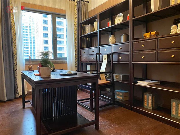 典雅的構(gòu)造,延伸著感性的觸角。真實(shí),自由,沒有任何雕飾的繁瑣,時(shí)光與心靈在簡潔和傳神中找到精妙平衡點(diǎn),無論是溫潤的書桌,還是書架中點(diǎn)睛的藝術(shù)品,都鋪陳出自然東方質(zhì)感。從書架上取下一本書靜靜閱讀,感受生活的純樸與平實(shí),簡單與真實(shí)。