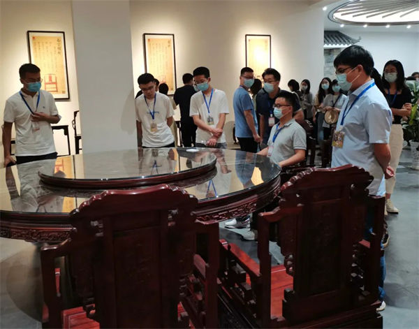 東成紅木生產(chǎn)基地將紅木文化館和家居體驗(yàn)館相結(jié)合,為社會(huì)各界提供一個(gè)優(yōu)質(zhì)的紅木文化展示交流平臺(tái),讓更多人了解優(yōu)秀的中國(guó)傳統(tǒng)文化和豐富的紅木家具藝術(shù)內(nèi)涵。廣州市番禺區(qū)黨校選調(diào)生一行先后參觀(guān)了東成紅木文化館、紅木家居體驗(yàn)館以及智能生產(chǎn)工廠(chǎng),全面了解東成紅木家具的生產(chǎn)工序和工藝流程以及日常的生產(chǎn)管理。