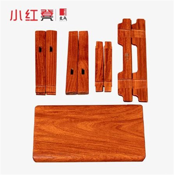 榫卯,被稱為藏在木頭里的靈魂,手工家具,更是終結(jié)了幾百年來匠人的心血。知新小紅凳由一塊面板,四根腿足,二塊牙板,二根橫棖組成,9大部件均是采用不需要“一槍一釘”的傳統(tǒng)“插肩、雙榫、明榫”等榫卯結(jié)構(gòu)和精湛的可拆裝工藝精制而成。腿足上端開口嵌牙條與牙頭嚴絲合縫,讓座面和腿部的拍合更加穩(wěn)固,并把座面上的承重均勻地分散到四足。