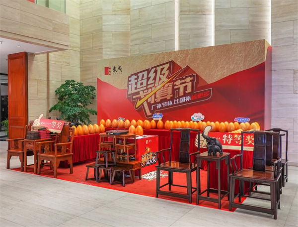 每消費滿5萬元即可砸金蛋一次,依此類推,封頂20次,百砸百中。大紅酸枝家具、緬花家具等您免費拿回家。