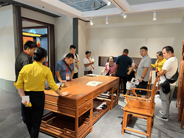 開館后展位迎來人流高潮,來自全國各地的家具愛好者蒞臨品鑒紅木