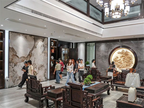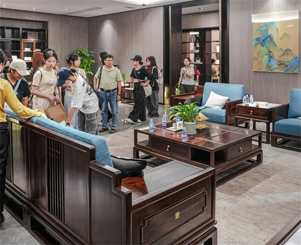 在交流互動中,他們的提問不再局限于課本,直指設(shè)計的核心:“這款椅子的曲線如何與人體工學(xué)完美融合?”“傳統(tǒng)紋樣怎樣才能與現(xiàn)代審美展開對話?”“面對珍貴的紅木資源,我們應(yīng)如何踐行‘可持續(xù)’設(shè)計理念?……一個個充滿思辨的提問,充分展現(xiàn)了他們對家具藝術(shù)的深層思考和不懈追求,東成紅木方面亦以豐厚的產(chǎn)業(yè)經(jīng)驗與獨到見解一一回應(yīng),贏得了師生們的頻頻贊許。