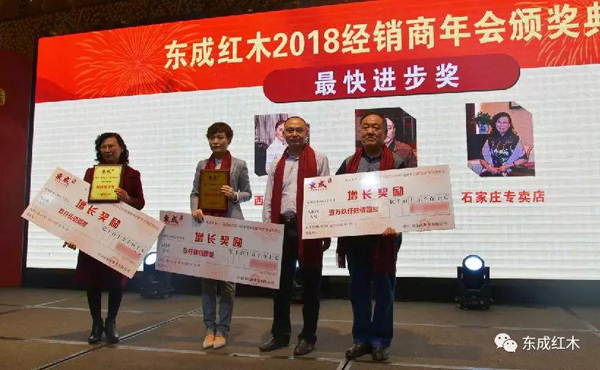 東成紅木生產(chǎn)廠長吳建清為最快進步經(jīng)銷商頒獎