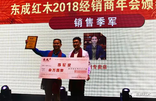 東成紅木張錫復(fù)董事長為冠軍經(jīng)銷商頒獎