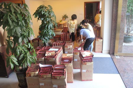 經(jīng)過行政部的辛勤勞動(dòng),中秋月餅整齊地分配成組。當(dāng)天下午,各部門員工有序地集合在東成紅木總部辦公樓前,領(lǐng)取自己的一份精美月餅,現(xiàn)場(chǎng)歡樂,祥和的氣氛,再次體現(xiàn)了東成紅木團(tuán)隊(duì)的和諧與溫暖。